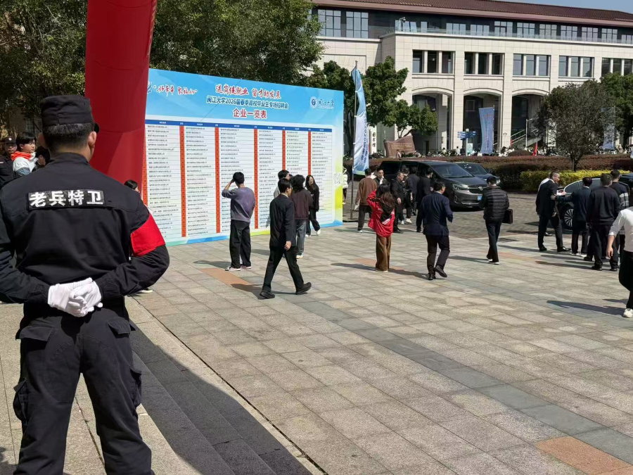 活动期间,全体安保队员身着统一制服,精神抖擞、姿态端正,严格按照安保方案开展工作,在校园入口、仪式现场、研讨会会场、毕业生招聘会等重点区域,实行执勤值守与巡逻防控。他们始终保持高度警惕,认真排查安全隐患,引导现场人员有序通行,耐心解答咨询,协力维护现场秩序,用严谨细致的工作态度和专业高效的服务能力,服务守护着校园,成为揭牌盛典上一道亮丽的“老兵风景线”。